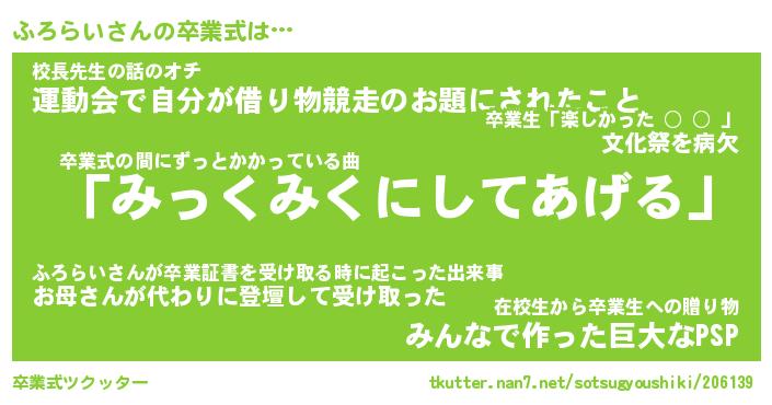 | ヘコむあだ名 | 『ふろっふぃ~』『牛乳』『ふろお』 |