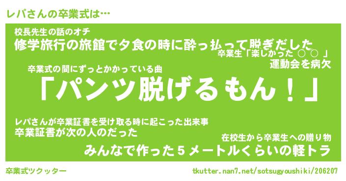 | ヘコむあだ名 | 『レパにゅー』『牛乳』『レパ太郎』 |