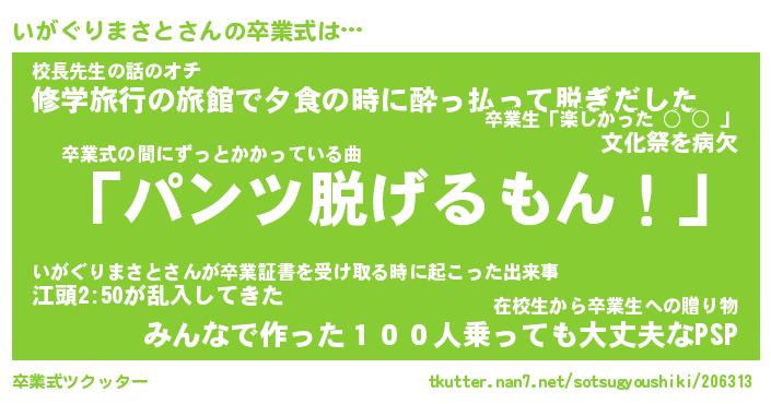 | 伝説のあだ名 | 『不死鳥のスナイパーいがぐりまさと』 |