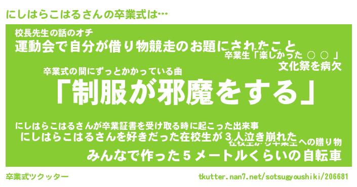 | 胡散臭い通販商品みたいなあだ名 | 『億万長者になれる水晶球…その名も「にしはらこはる」』 |