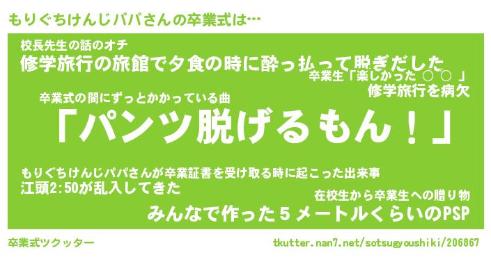 胡散臭い通販商品みたいなあだ名 | 『モテモテ間違いなし霊験あらたかなお札…その名も「もりぐちけんじパパ」』 |