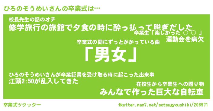 | 伝説のあだ名 | 『伝説のスナイパーひろのそうめい』 |