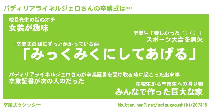 | 欧米人風あだ名 | 『マイケルパディリアライネルジェロ』 |