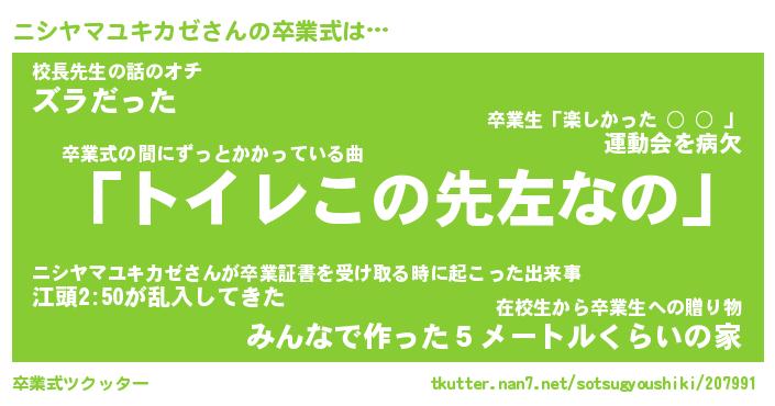 | 胡散臭い通販商品みたいなあだ名 | 『必ず成功するブレスレット…その名も「ニシヤマユキカゼ」』 |