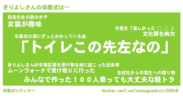 | 伝説のあだ名 | 『伝説のスナイパーきりよし』 |