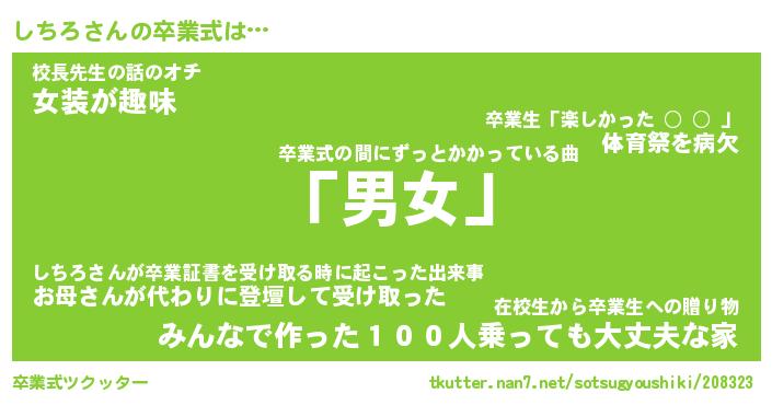 | ピコ太郎風あだ名 | 『シコ次郎』『ピシ十郎』『シチ六郎』 |