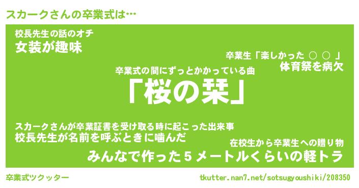 | 意味不明あだ名 | 『ペロリンスカーク』『永久保存スカーク』 |