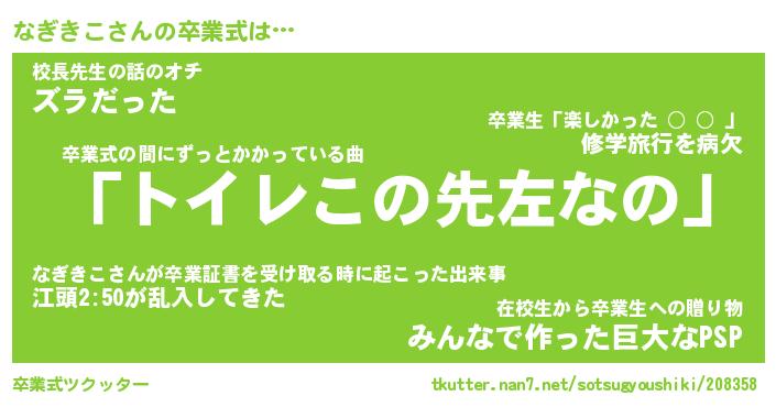 | 胡散臭い通販商品みたいなあだ名 | 『必ず成功するブレスレット…その名も「なぎきこ」』 |