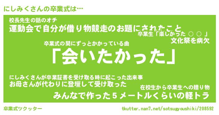 | ヘコむあだ名 | 『にしもー』『つくし』『にしっ子』 |