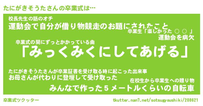 | ピコ太郎風あだ名 | 『タコ六郎』『ピタ史郎』『タニ六郎』 |