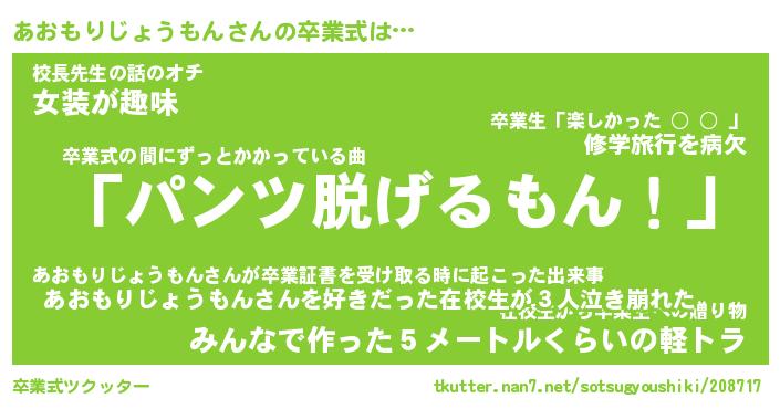 | 胡散臭い通販商品みたいなあだ名 | 『モテモテ間違いなし霊験あらたかなお札…その名も「あおもりじょうもん」』 |
