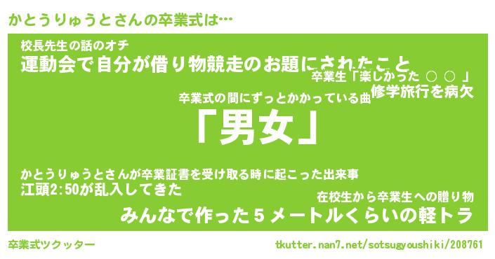 | 胡散臭い通販商品みたいなあだ名 | 『必ず成功するブレスレット…その名も「かとうりゅうと」』 |