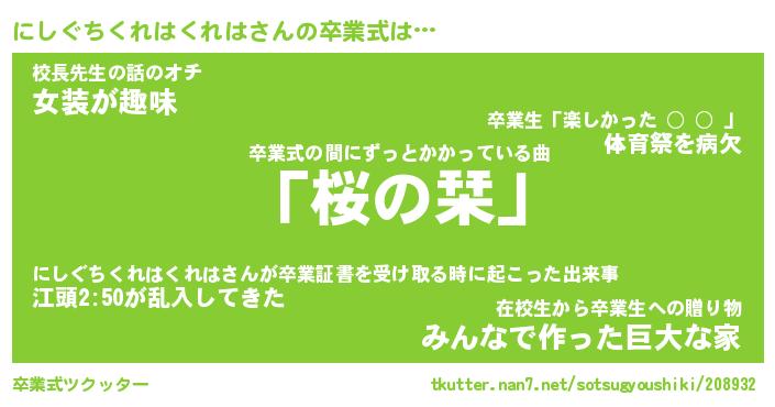 | ツイッター | にしぐちくれはくれはさんのツイッターID『fukuyoka_kun』 |