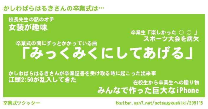 | 胡散臭い通販商品みたいなあだ名 | 『必ず成功する霊験あらたかなお札…その名も「かしわばらはるき」』 |