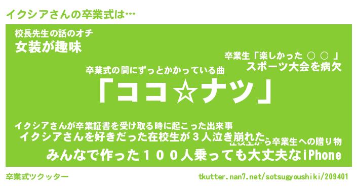 | 意味不明あだ名 | 『ペロリンイクシア』『永久保存イクシア』 |