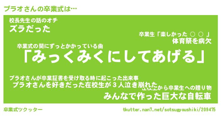 | ヘコむあだ名 | 『プラにー』『酢こんぶ』『プラを』 |