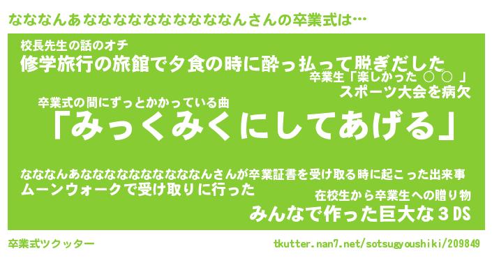 | 胡散臭い通販商品みたいなあだ名 | 『必ず成功するブレスレット…その名も「なななんあななななななななななん」』 |