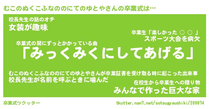 | 伝説のあだ名 | 『伝説のスナイパーむこのぬくこふなののにてのゆとや』 |