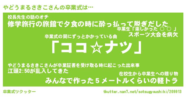 | 伝説のあだ名 | 『不死鳥のスナイパーやどうまるさきこ』 |