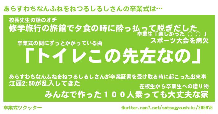 | 胡散臭い通販商品みたいなあだ名 | 『必ず成功するブレスレット…その名も「あらすわちなんふねをねつるしるし」』 |
