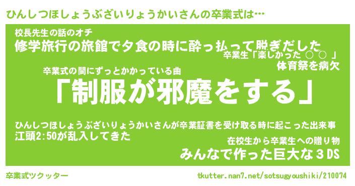 | 学校 | ひんしつほしょうぶざいりょうかい校長が勤める学校の名前『公立女子にょきにょき中学校』 |