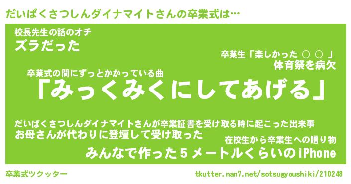 | 胡散臭い通販商品みたいなあだ名 | 『必ず成功する霊験あらたかなお札…その名も「だいばくさつしんダイナマイト」』 |