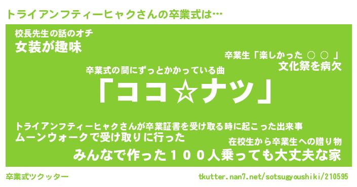 | 男性向けラノベタイトル風あだ名 | 『トライアンフティーヒャクの憂鬱』 |
