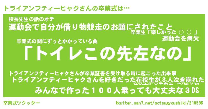 | 男性向けラノベタイトル風あだ名 | 『トライアンフティーヒャクの憂鬱』 |