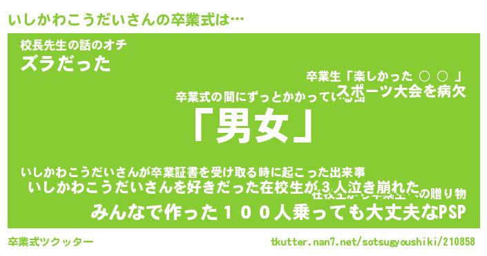 | 伝説のあだ名 | 『伝説のスナイパーいしかわこうだい』 |