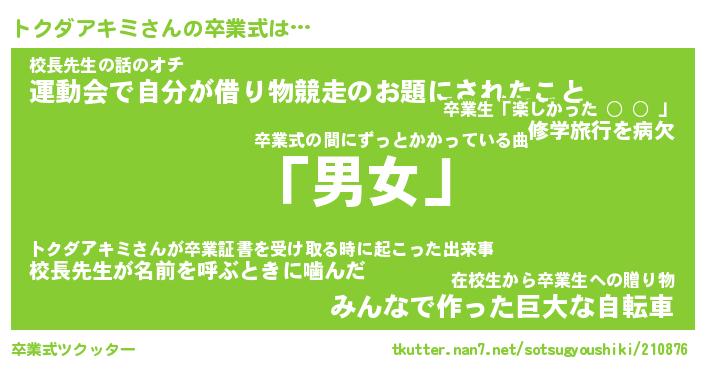 | 伝説のあだ名 | 『伝説のスナイパートクダアキミ』 |