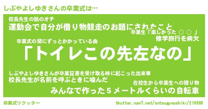 | 伝説のあだ名 | 『伝説のスナイパーしぶやよしゆき』 |