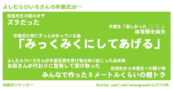 | ヘコむあだ名 | 『よしにゅー』『なまこ酢』 |