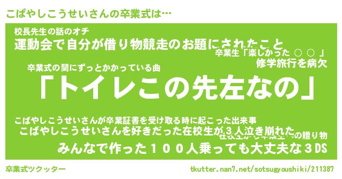| 伝説のあだ名 | 『伝説のスナイパーこばやしこうせい』 |