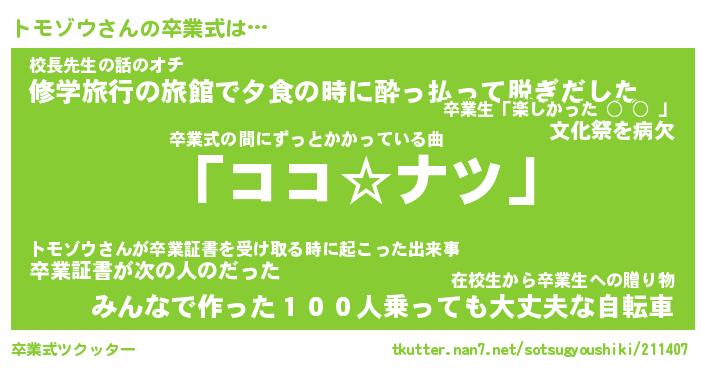 | 意味不明あだ名 | 『ペロリントモゾウ』『永久保存トモゾウ』 |