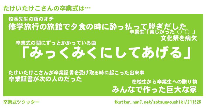 | ヘコむあだ名 | 『たけもー』『酢こんぶ』 |