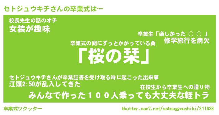 | 男性向けラノベタイトル風あだ名 | 『セトジュウキチアートオンライン』 |