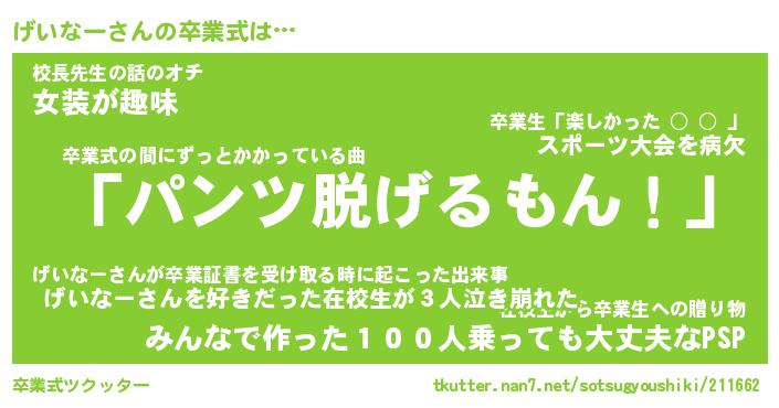| 意味不明あだ名 | 『ペロリンげいなー』『永久保存げいなー』 |