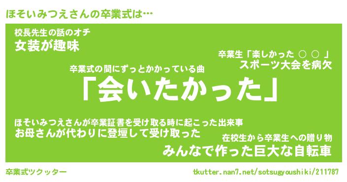 | 恥ずかしいあだ名 | 『プリティーほそいみつえ』『ほそっちょ』 |