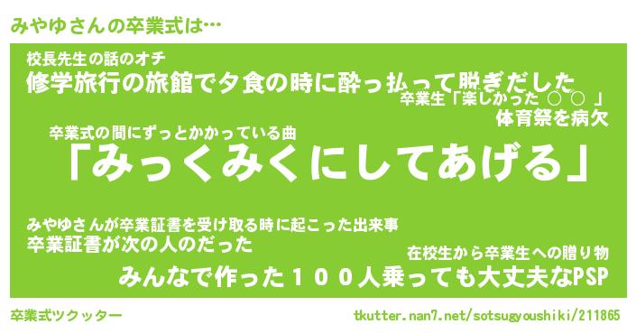 | 伝説のあだ名 | 『伝説のスナイパーみやゆ』 |