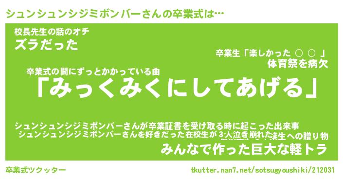| 胡散臭い通販商品みたいなあだ名 | 『必ず成功する霊験あらたかなお札…その名も「シュンシュンシジミボンバー」』 |