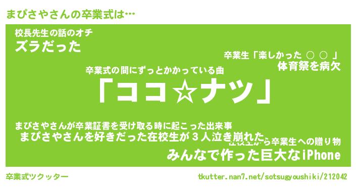 | ヘコむあだ名 | 『まぴふぇ~』『なまこ酢』『まぴお』 |