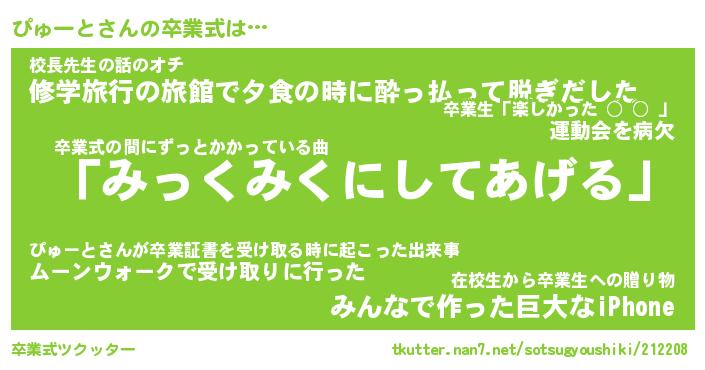 | ヘコむあだ名 | 『ぴゅにゅー』『豆乳』『ぴゅお』 |