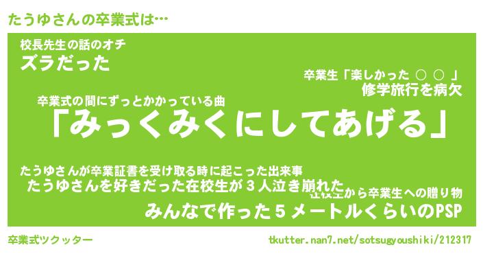 | 伝説のあだ名 | 『伝説のスナイパーたうゆ』 |