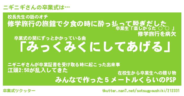 | ピコ太郎風あだ名 | 『ニコ三郎』『ピニ六郎』『ニギ太郎』 |
