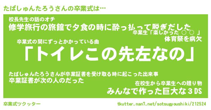 | 伝説のあだ名 | 『伝説のスナイパーたばしゅんたろう』 |