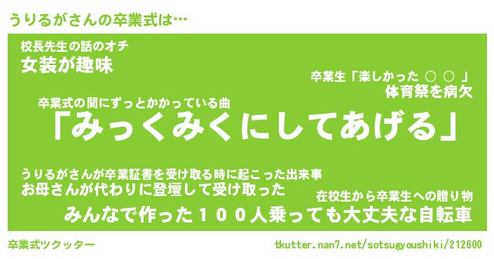 | ピコ太郎風あだ名 | 『ウコ二郎』『ピウ太郎』『ウリ史郎』 |