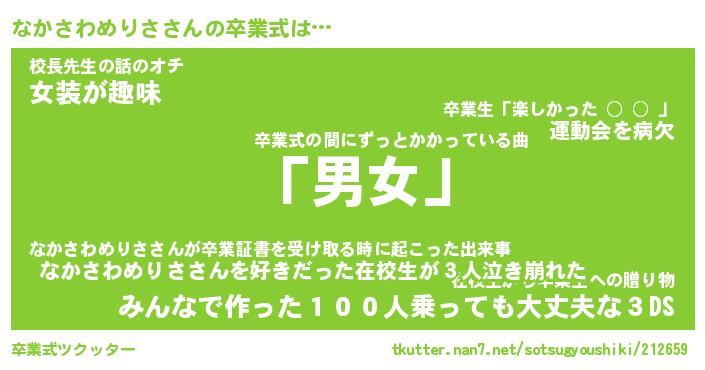 | ヘコむあだ名 | 『なかふぇ~』『なまこ酢』 |