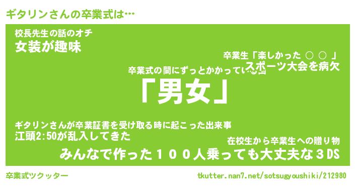| ピコ太郎風あだ名 | 『ギコ一郎』『ピギ三郎』『ギタ六郎』 |