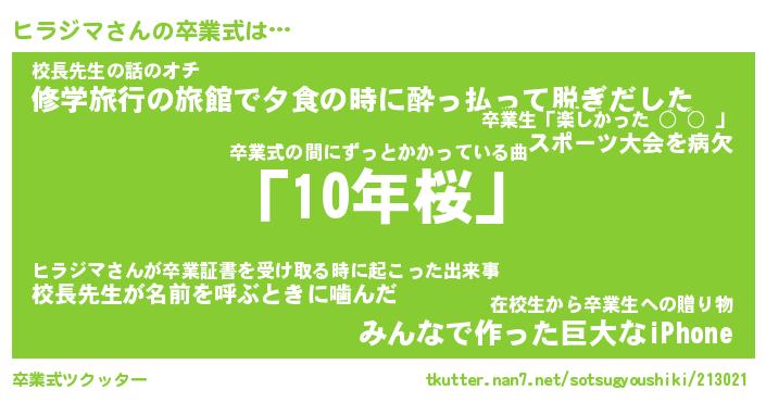 | 意味不明あだ名 | 『ペロリンヒラジマ』『永久保存ヒラジマ』 |