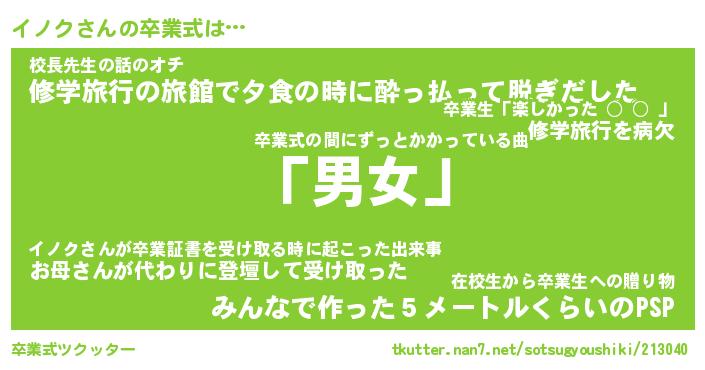 | ピコ太郎風あだ名 | 『イコ四郎』『ピイ太郎』『イノ一郎』 |